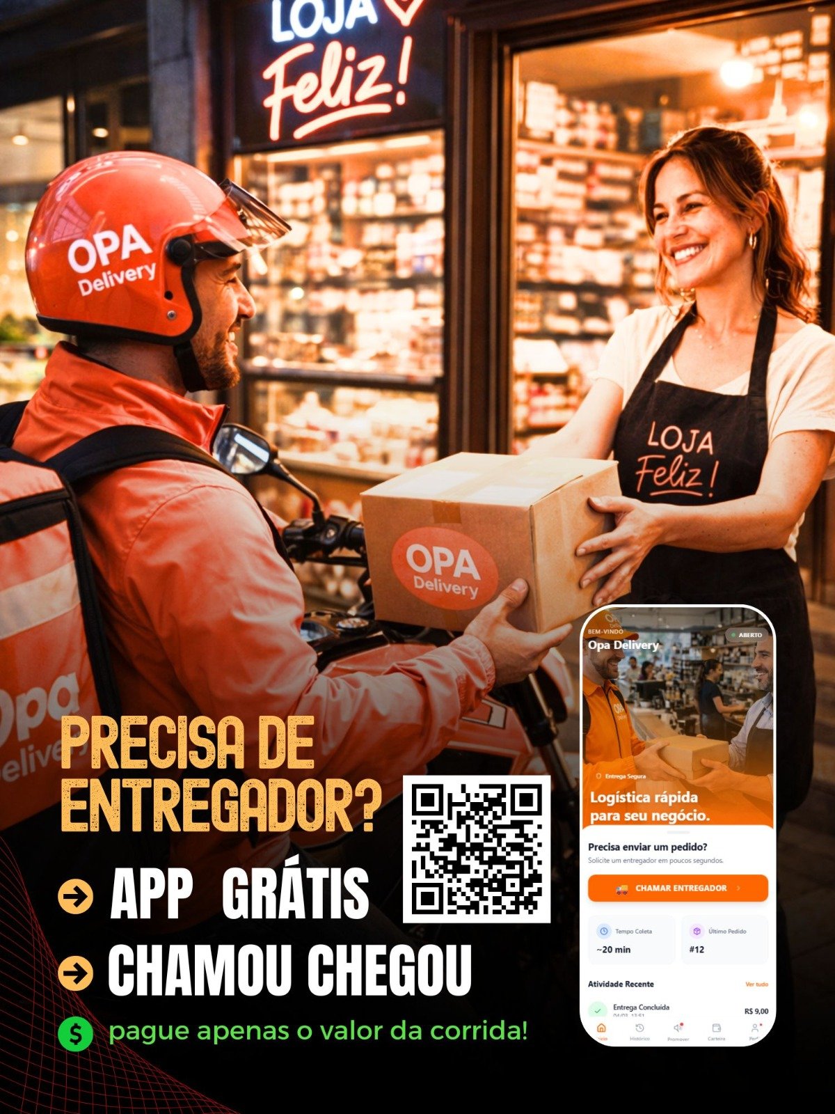 OPA DELIVERY – mais oportunidades, mais entregas e 100% da taxa para o entregador. 🚀